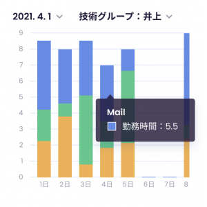 個人グラフ 勤務時間 1日 のグラフで確認!