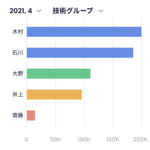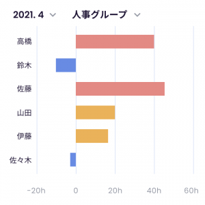 グループグラフ 残業時間 1ヶ月 のグラフで確認!